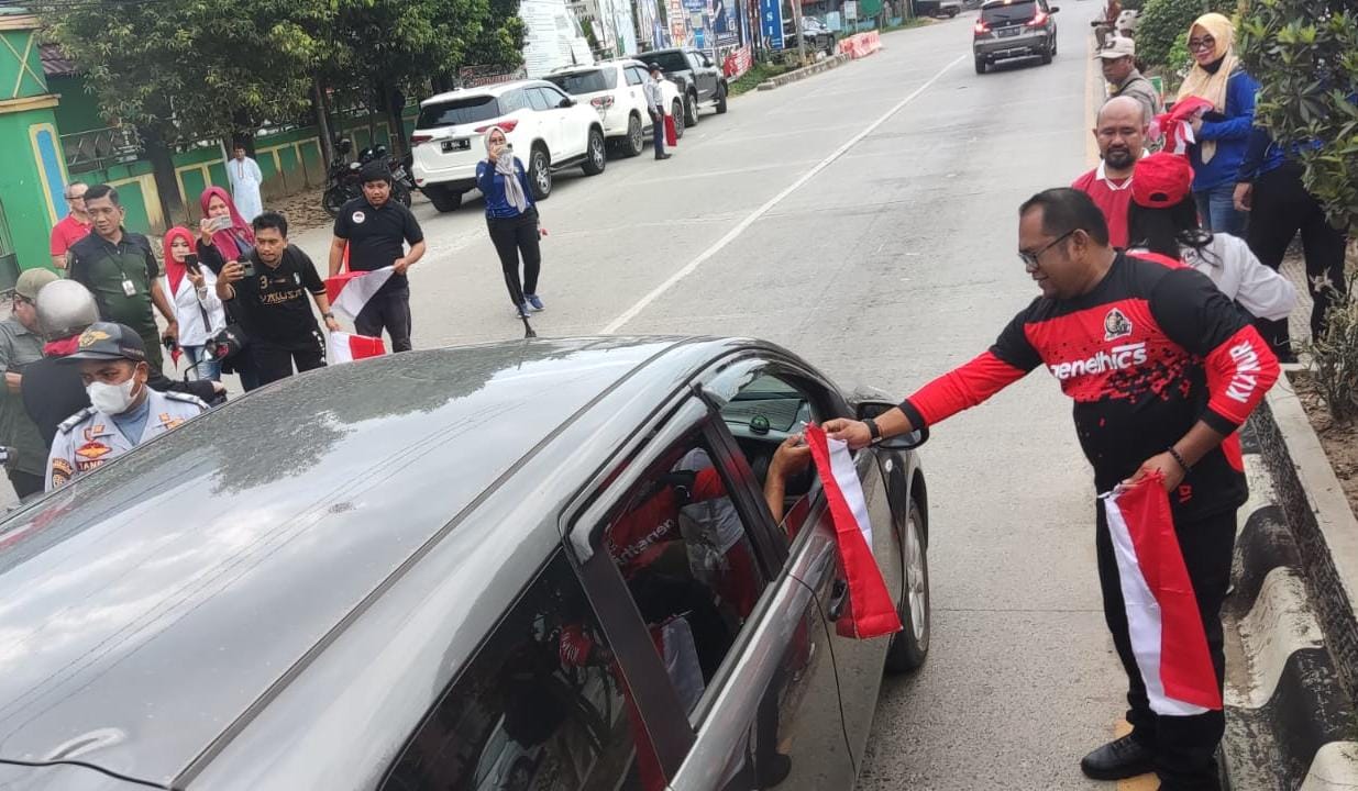 Pembagian bendera tersebut menyasar masyarakat dan pengendara baik kendaraan roda empat, roda enam serta roda dua di depan Sekolah Negeri (SDN) 004 Sangatta, Jumat (11/8/2023) pagi.