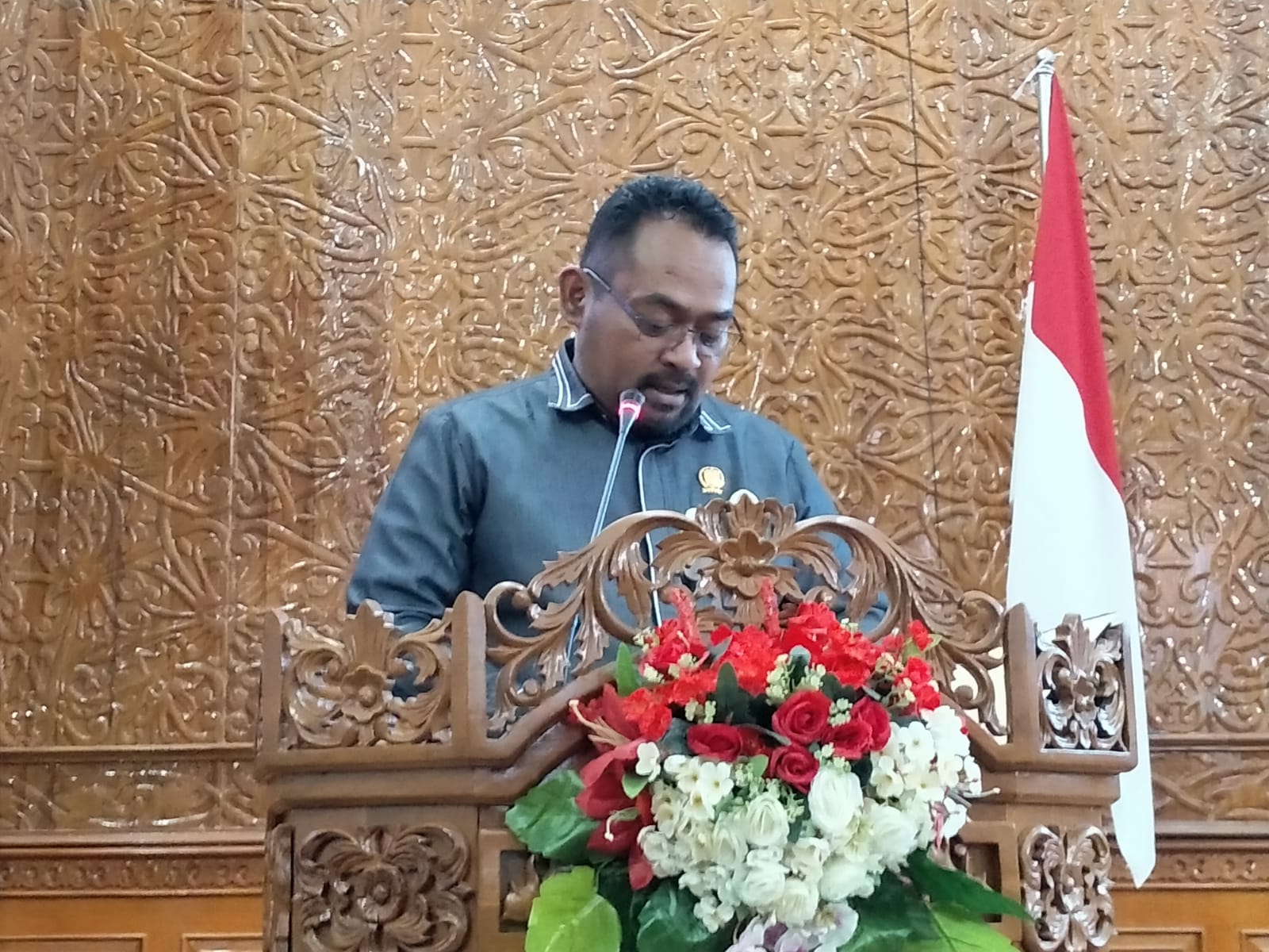 “Dengan dihadiri dan ditandatangani berjumlah 27 orang anggota DPRD Kabupaten Kutai Timur, dengan rincian 21 yang hadir dan 6 orang melalui zoom. Bismillah Dengan mengucapkan Bismillah, Rapat Paripurna Ke-30 masa sidang ketiga tahun sidang 2023/2024 dengan acara persetujuan bersama antara DPRD dan Bupati Kutai Timur terhadap rancangan peraturan daerah tentang pertanggungjawaban pelaksanaan anggaran pendapatan dan belanja daerah tahun anggaran 2023, dengan ini saya nyatakan dibuka,” tegas Ketua DPRD Kutim Joni saat membuka rapat.