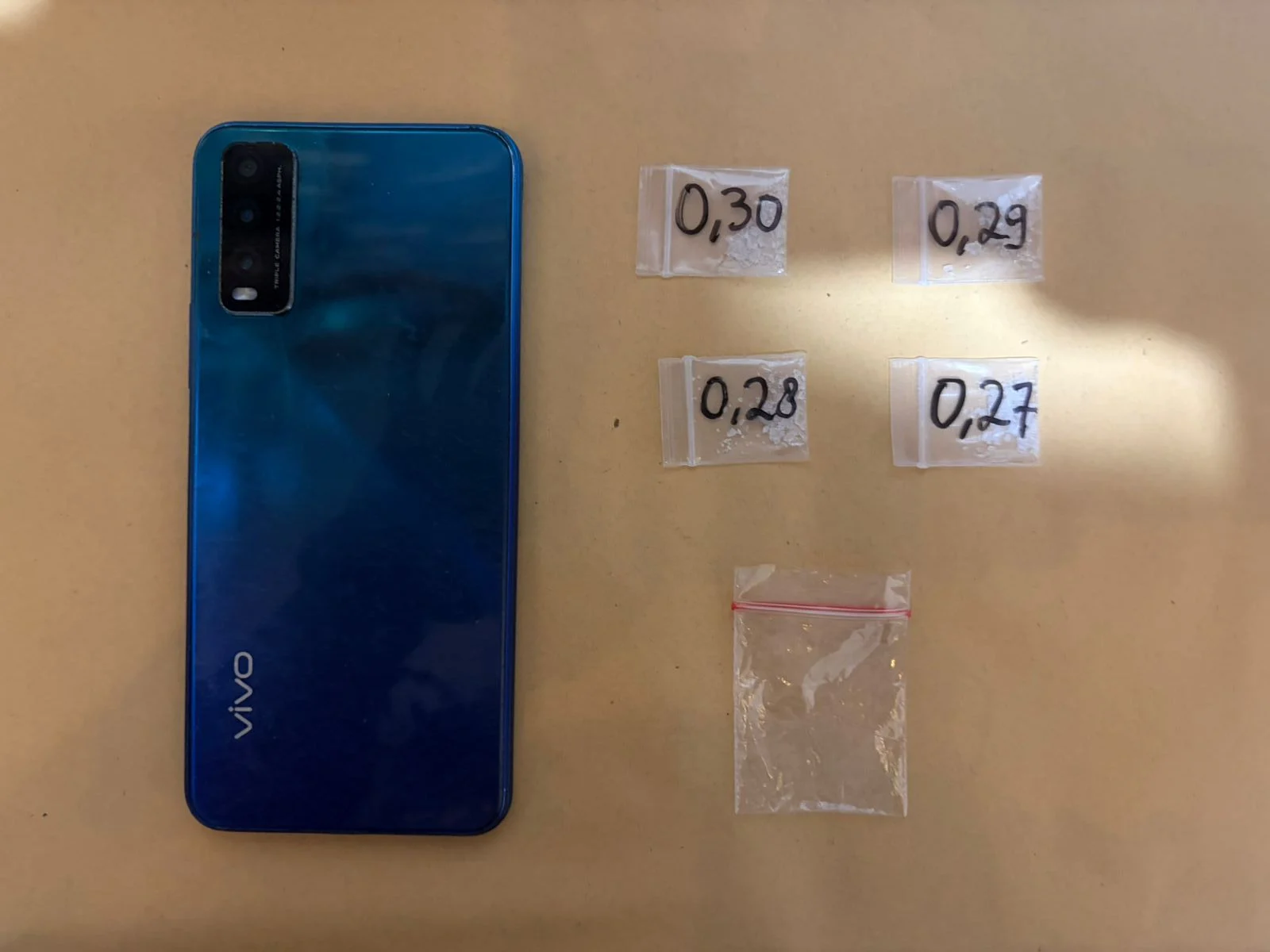 Barang bukti yang ditemukan berupa empat poket narkotika jenis sabu dengan total berat 1,14 gram brutto yang terbungkus dalam satu lembar klip plastik. Selain sabu, petugas juga mengamankan satu unit gawai warna biru milik tersangka.
