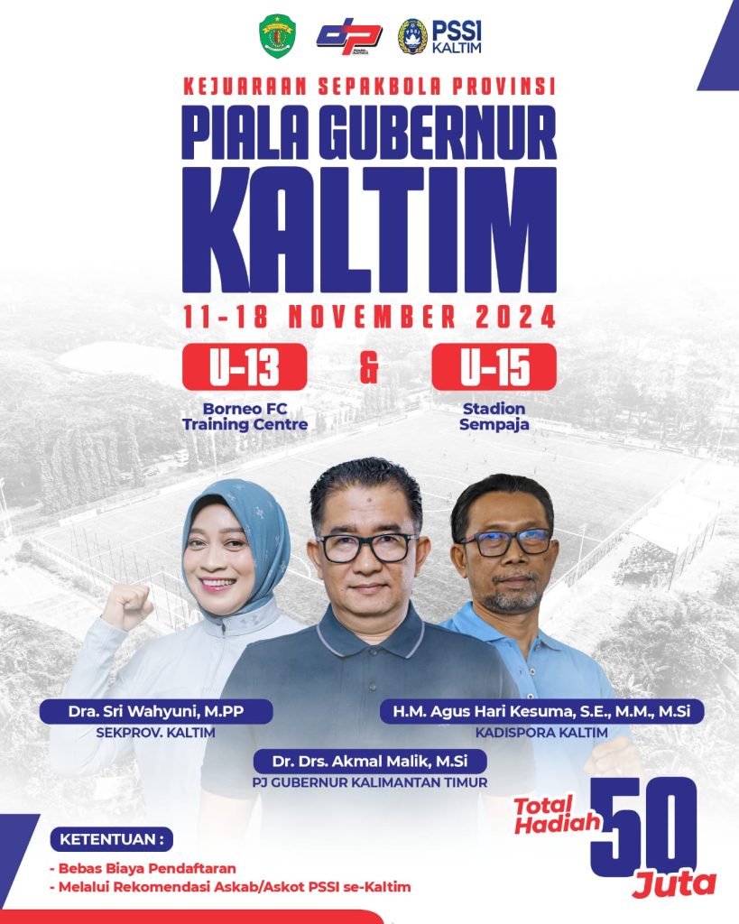Samarinda, Sketsa.id – Dispora Kalimantan Timur kembali menunjukkan komitmennya dalam pengembangan sepak bola usia muda melalui Kejuaraan Sepak Bola Piala Gubernur Kaltim 2024. Ajang ini nantinya akan diadakan pada 11-18 November 2024 dan mencakup kategori U-13 di Borneo FC Training Centre serta U-15 di Stadion GOR Kadrie Oening, Samarinda. Dengan total hadiah mencapai Rp 50 […]